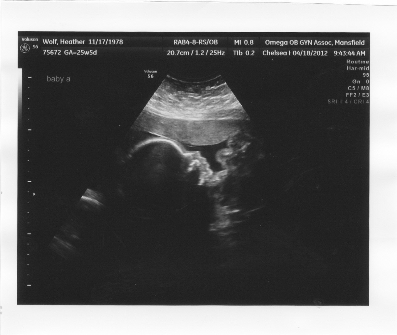 Had another sono and check-up today. Everything is going well! The babies look great and she has been pretty active today. I've been able to feel them more and more, but nothing on the outside yet. Joe keeps testing =)