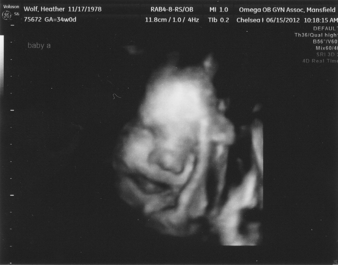 Here is a picture of our Baby Girl. Our Baby Boy was being shy and wouldn't show his face this time . . . little bugger =)