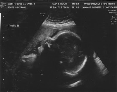 We had a growth sono this last Friday and the twins look great! Everyone is growing well. Moving around a bunch too! Joe has been able to feel them moving more often recently; it's fun to weatch his face when they kick while he's feeling.