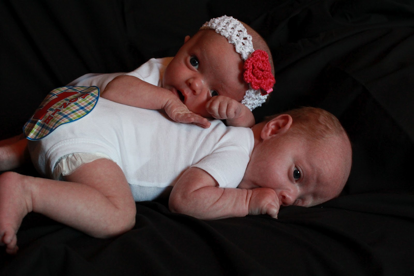 We love them even more and more each day!! =) Here are a few pictures I took today for their seven week pics.