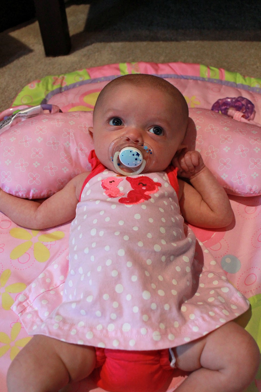 Tesla sorta enjoying tummy time - she is not a big fan (& usually ends up fussy) |