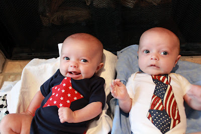 Oo, I love Tesla's smile!! Isn't it just so much fun when they start that!? And her thighs are filling in nicely (give 'em a little squeeze from Aunt Kelli). =) Go, Jaken, on the tummy time! And I love LOVE their cute outfits! =)