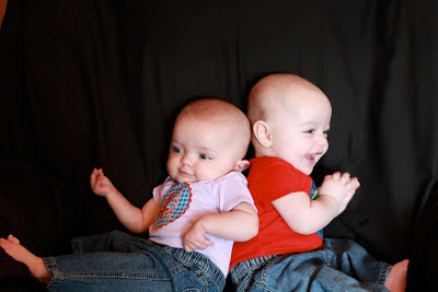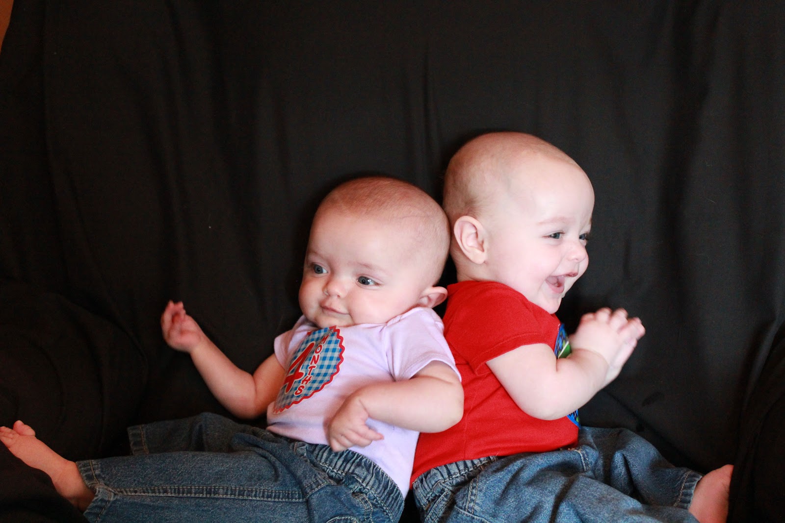 We took a couple pictures on their actual 4 month birthday but they were sick so they don't look super great, but here are a couple. The matching John Deere onsies came from Grandpa Eger!