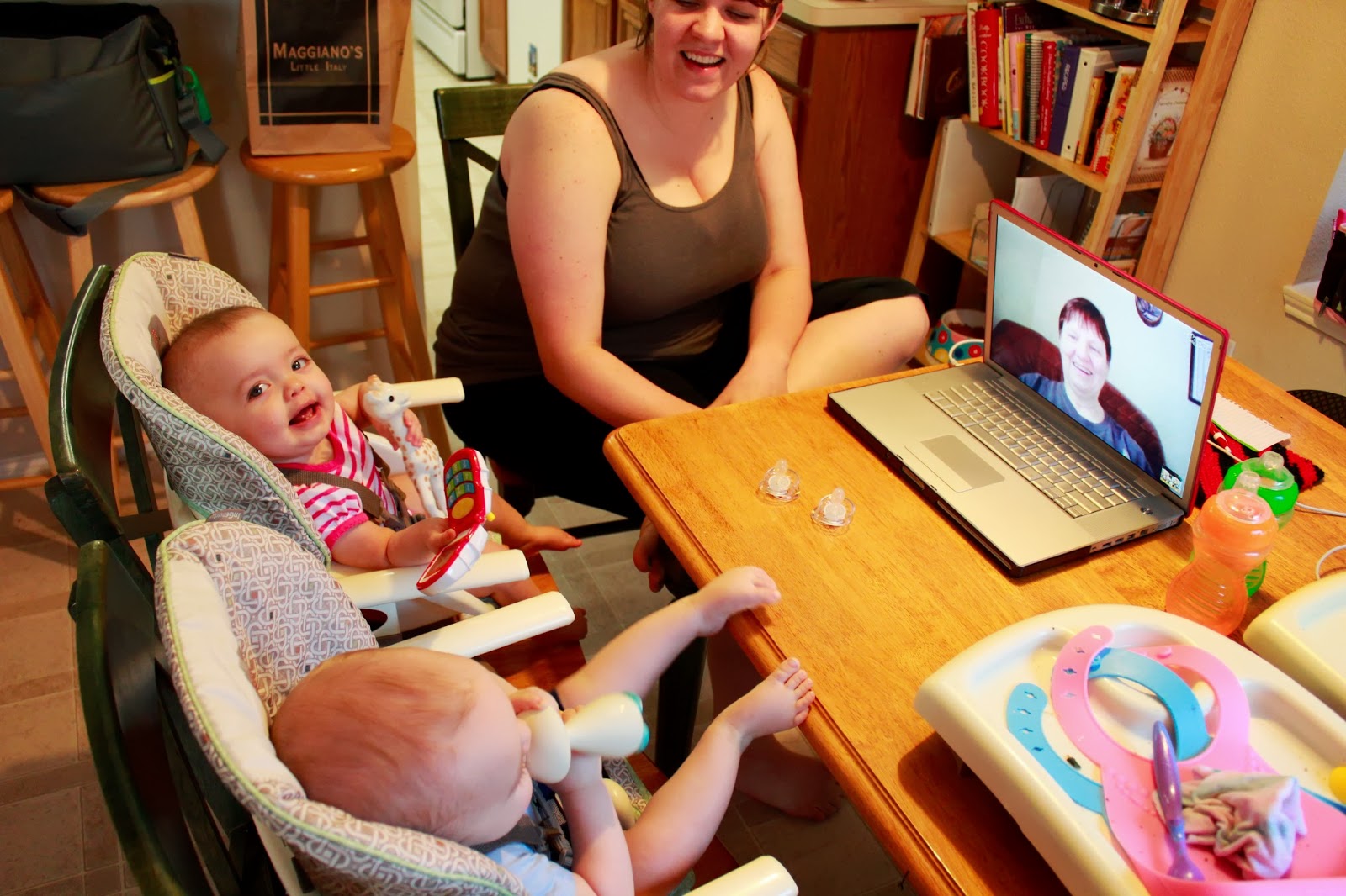 | sometimes we sit in our Bumbos when we Skype with Grandma Eger |