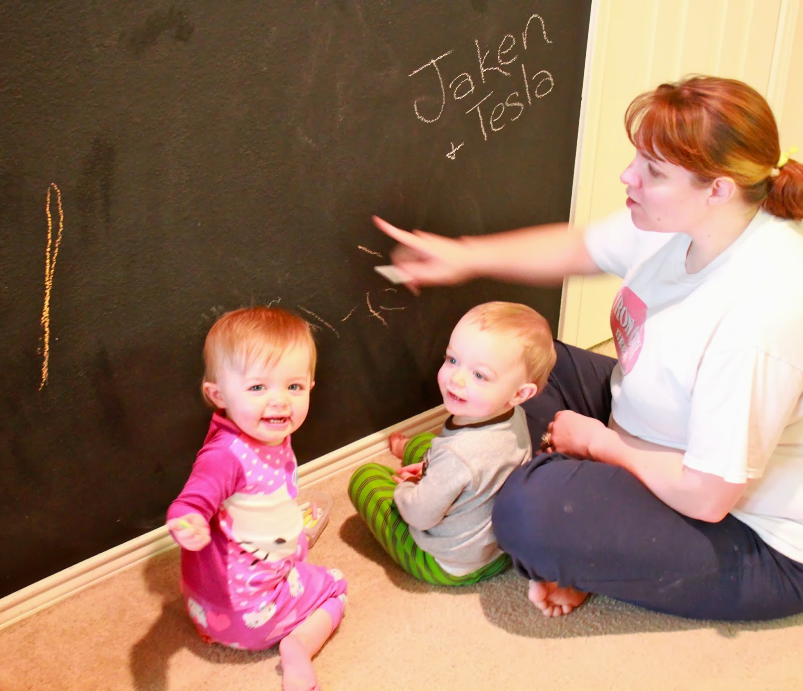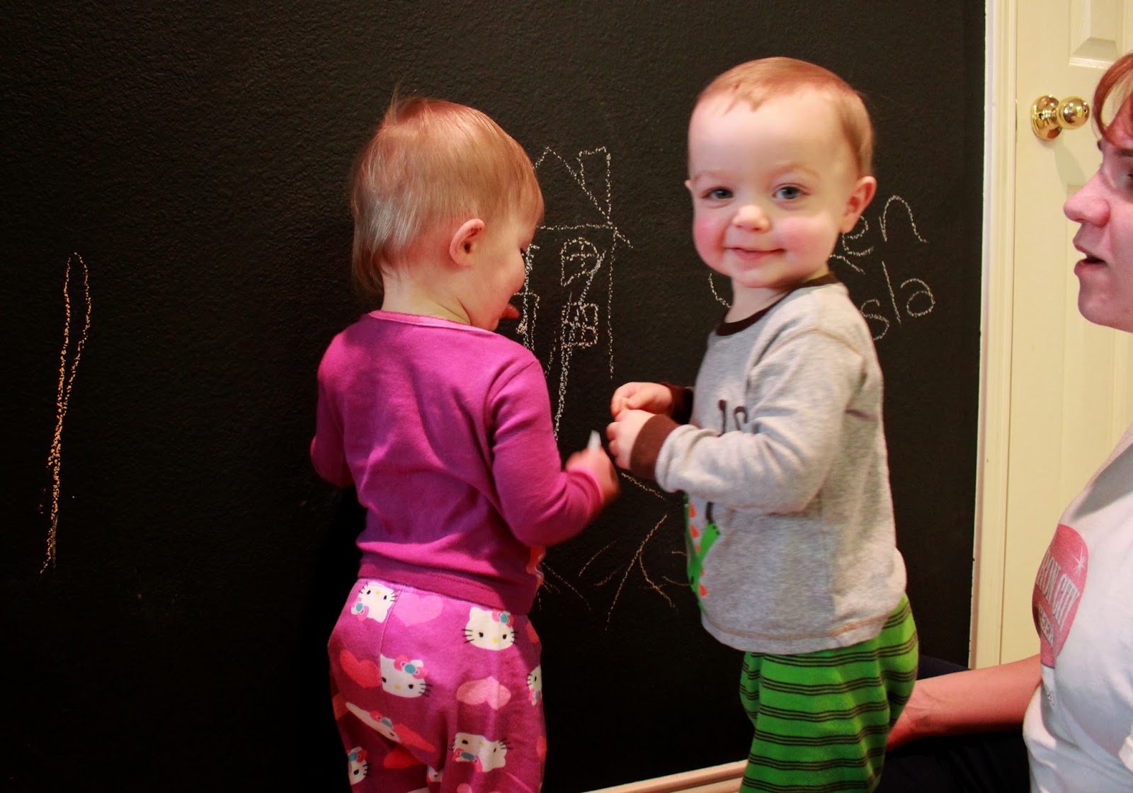 We also got to use our new chalkboard wall (we actually painted it a few months ago). Kiddos love it!