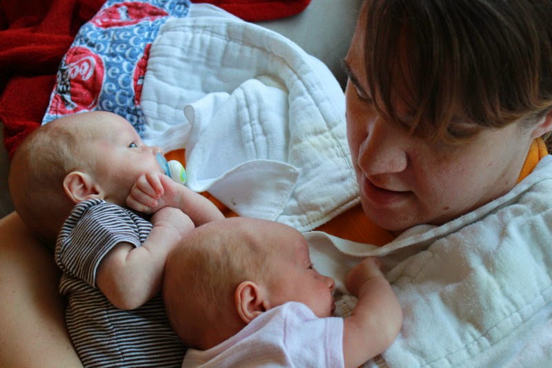 The triplets were born at 32 weeks and spent 3 weeks in the NICU learning to eat and growing. Maximus came home at 35 weeks on the dot and then Lyla came home just a few days later. It has been wonderful to have them home - it was tough leaving them at the hospital when I was discharged but Joe or I went to see them everyday. =)